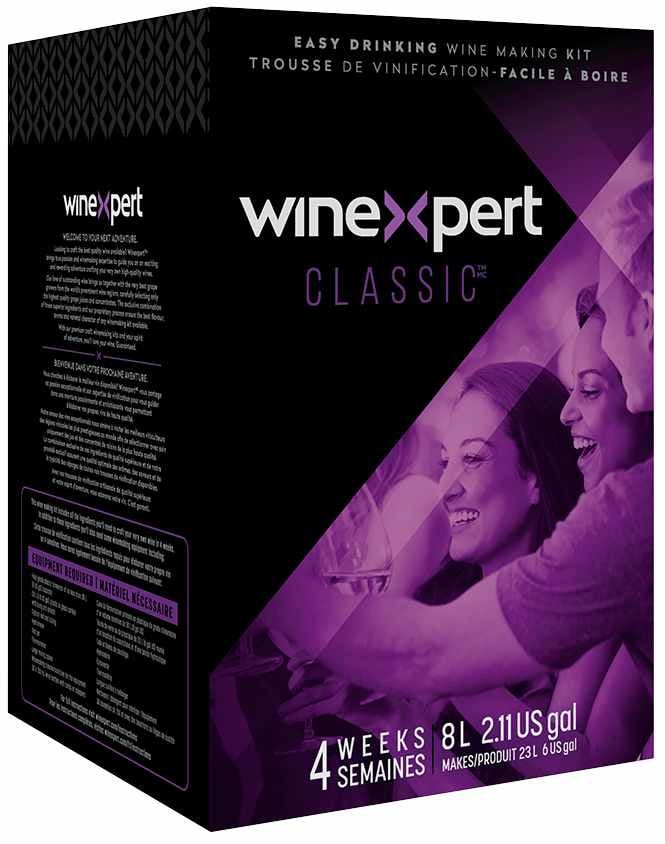 Informations générales sur le kit : 4 semaines, 8 L | 2,11 gal US, donne 23 L | 6 gal US. Étiquettes vendues séparément. Envie d’un vin délicieux et polyvalent pour toutes les occasions ? Winexpert Classic™ est le vin idéal à avoir sous la main pour les grands événements de la vie comme pour les petits plaisirs du quotidien. Savourez le plaisir d’élaborer des vins de grande qualité et polyvalents issus des meilleurs pays du monde : de la richesse d’un Shiraz mûr et vif à la fraîcheur d’un Pinot Grigio italien, créez des vins délicieux.