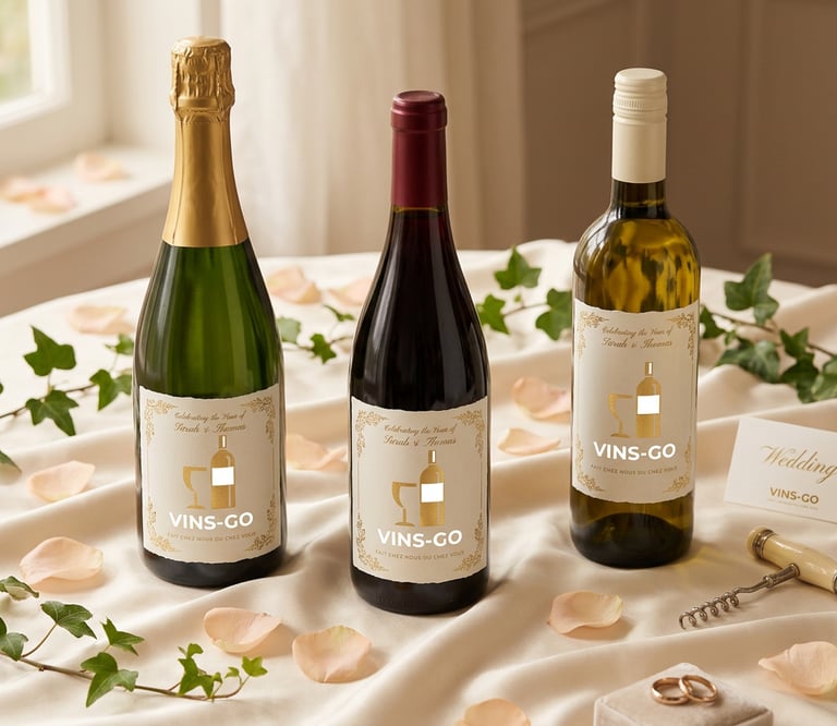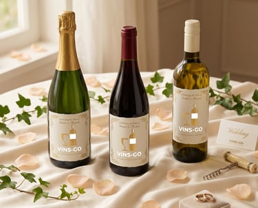 Vins-Go specializes in crafting custom wine labels tailored for every occasion—from weddings and anniversaries to private events and celebrations. Our personalized designs add a unique, elegant touch to your bottles, creating memorable keepsakes that perfectly reflect your special day